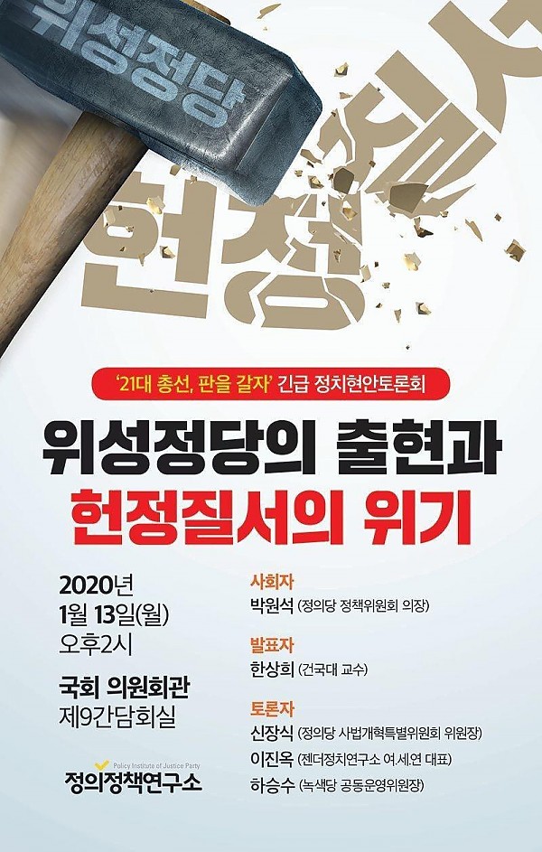 1월 13일(월) 오후 2시, "위성정당의 출현과 헌정질서의 위기" 토론…